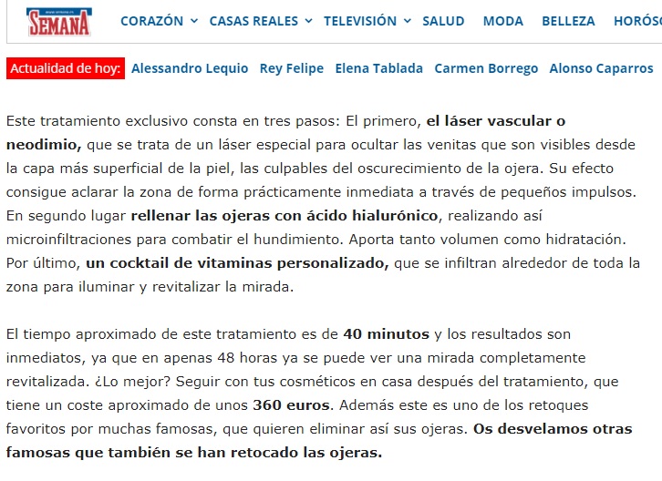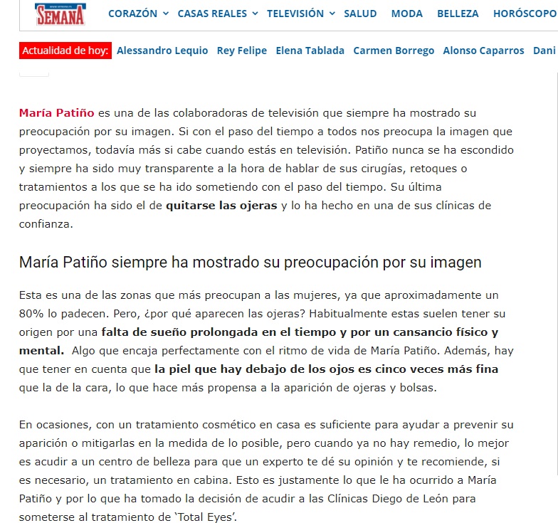 REVISTA SEMANA: EL ÚLTIMO TRATAMIENTO ESTÉTICO DE MARÍA PATIÑO PARA ELIMINAR LAS OJERAS