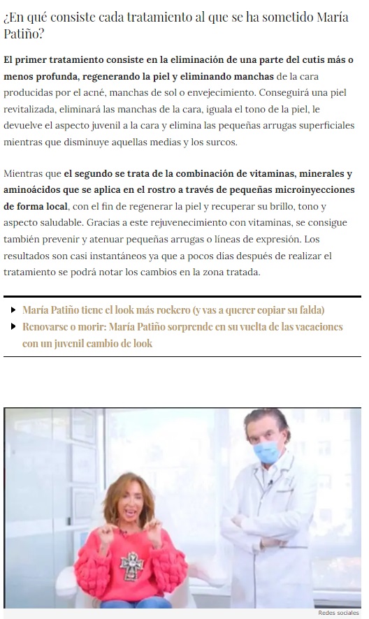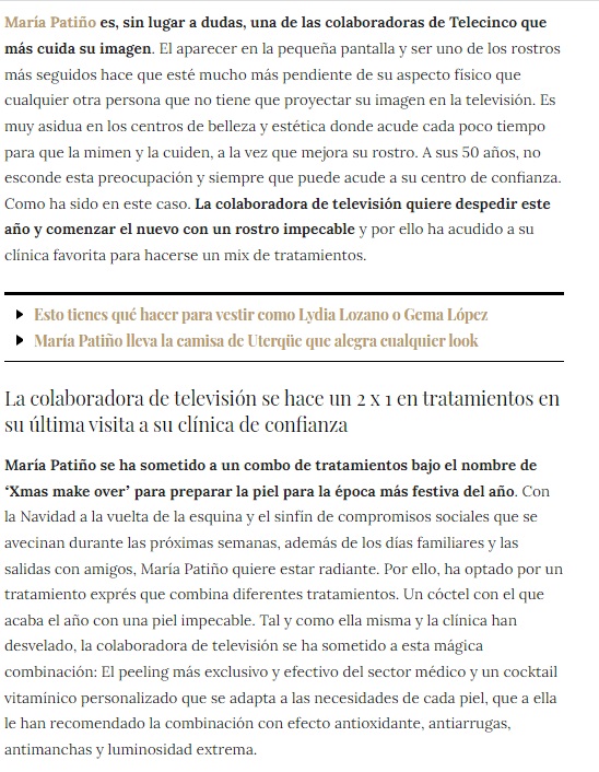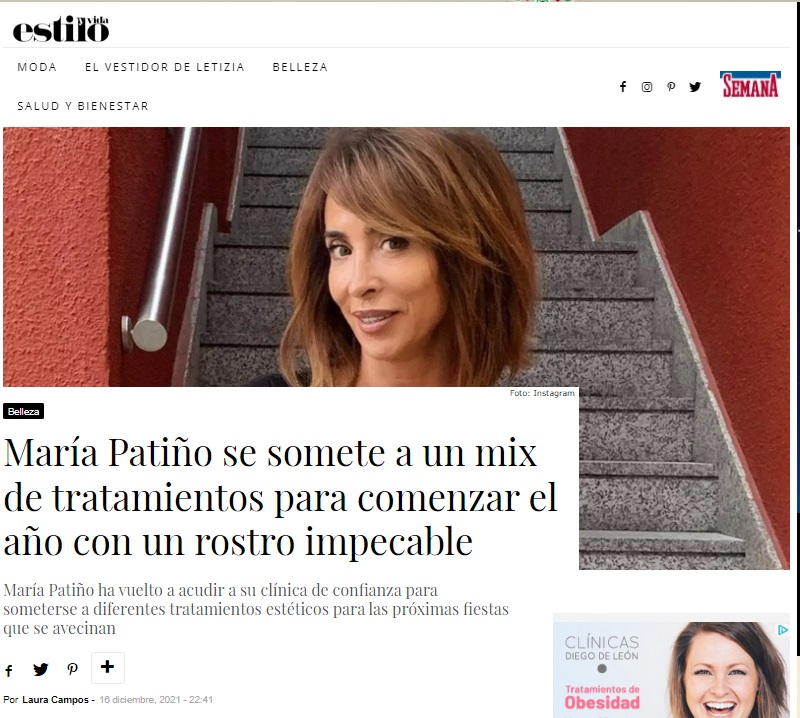 EN SEMANA: MARÍA PATIÑO SE SOMETE A UN MIX DE TRATAMIENTOS PARA LUCIR ROSTRO IMPECABLE Pide cita EN SEMANA: MARÍA PATIÑO SE SOMETE A UN MIX DE TRATAMIENTOS PARA COMENZAR EL AÑO CON UN ROSTRO IMPECABLE