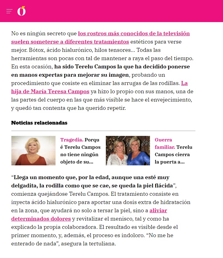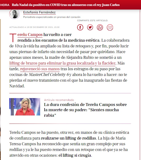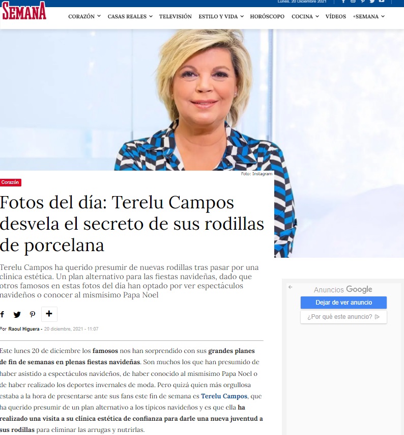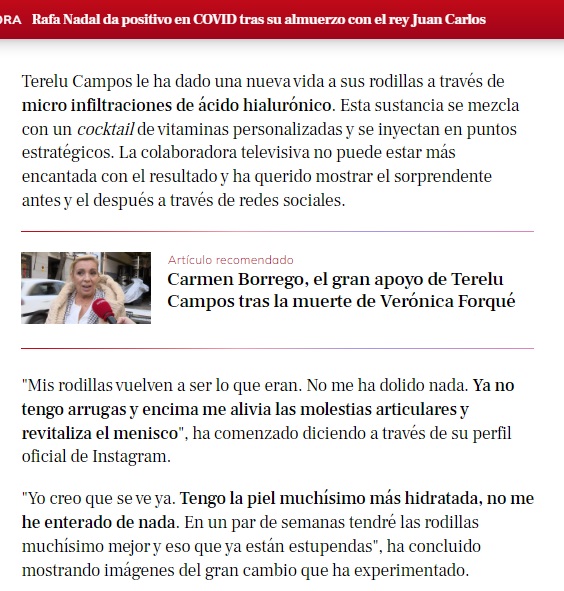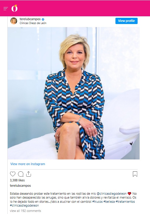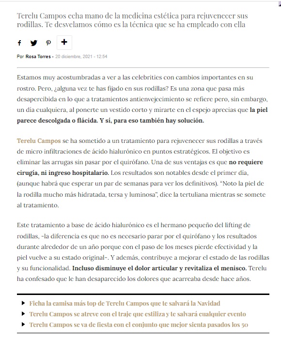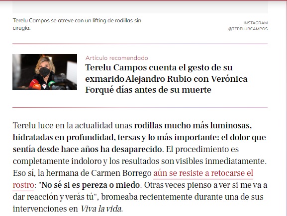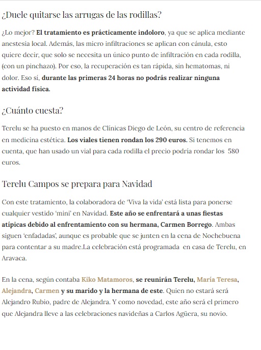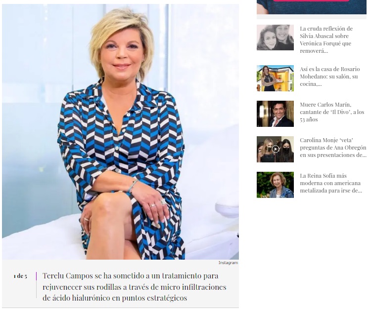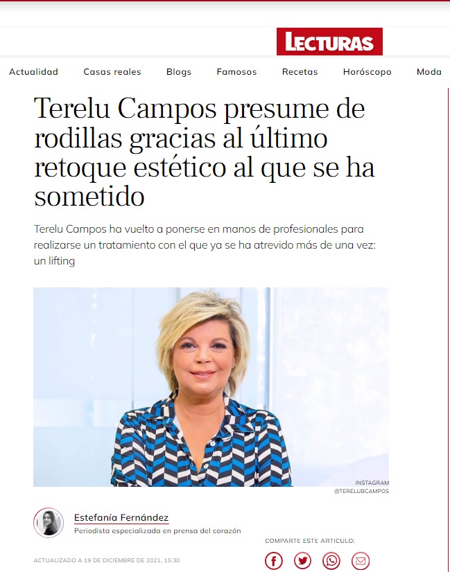 LECTURAS: TERELU CAMPOS PRESUME DE RODILLAS GRACIAS AL RETOQUE ESTÉTICO QUE SE HA HECHO