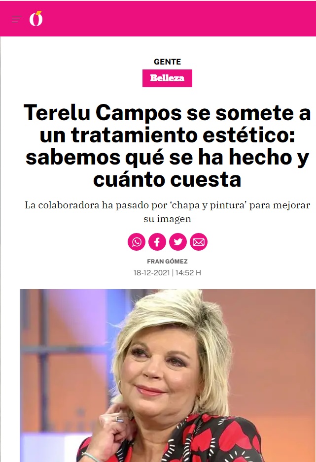 LA RAZÓN: TERELU CAMPOS SE SOMETE A UN TRATAMIENTO ESTÉTICO: SABEMOS LO QUE SE HA HECHO Y CUÁNTO CUESTA