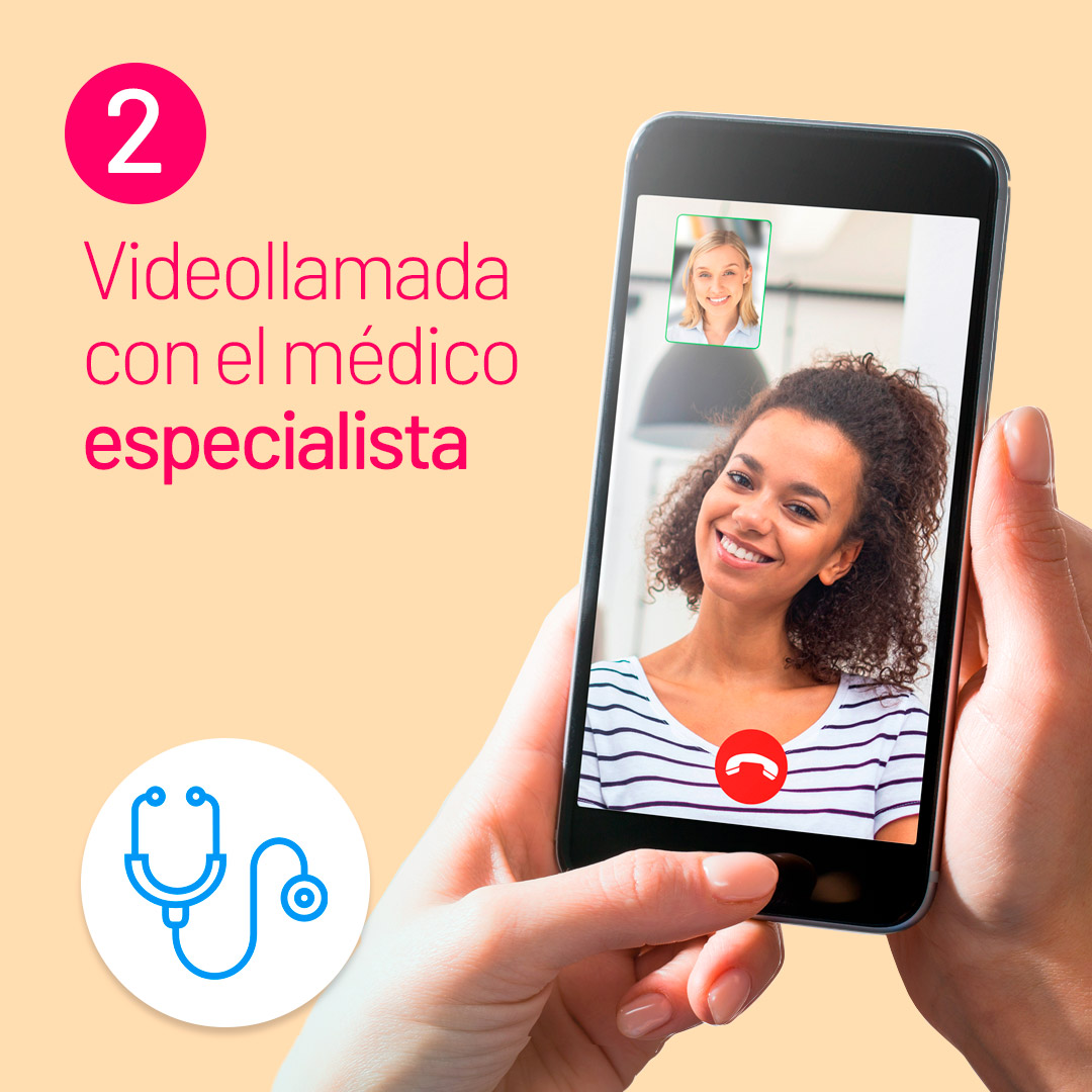 Inmediatamente después tendrás la oportunidad de que te agendemos una videoconsulta con tu doctor especializado, en la que podrás resolver todas tus dudas e inquietudes.