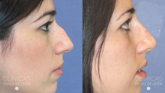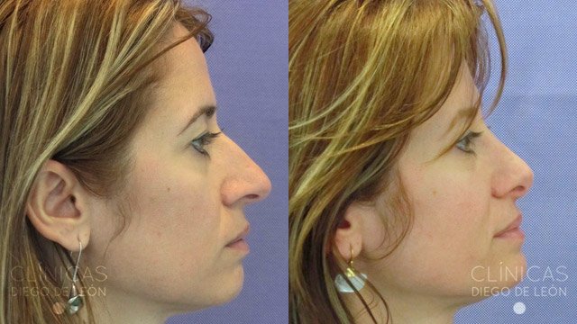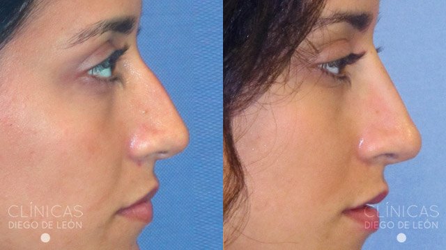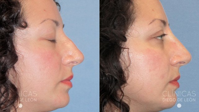 Y por último, te mostramos este antes y después de una paciente que consiguió acabar con la famosa forma de nariz tan conocida como nariz aguileña, caracterizada por una curvatura excesiva que provoca un aspecto más rudo y asociado a una persona de un rango de edad superior.