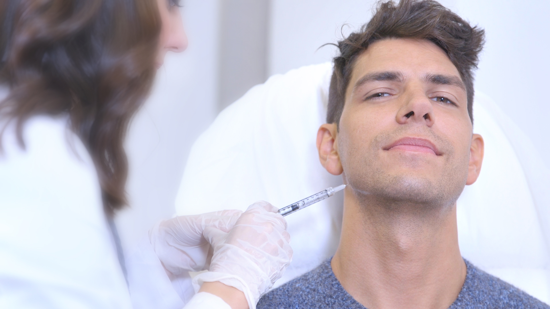 No lo dudó y se decantó por el perfilado mandibular con micro infiltraciones de ácido hialurónico, más conocido como masculinización facial. Estas infiltraciones se aplican desde ambos lados del rostro -justo al lado de los maseteros- por toda la mandíbula hasta el mentón.