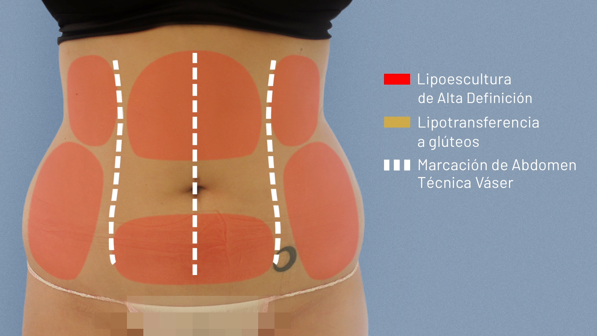 En el caso de Marichu Del Amo, la liposucción de alta definición o liposucción con técnica vaser se realizó en abdomen, flancos y brazos.
